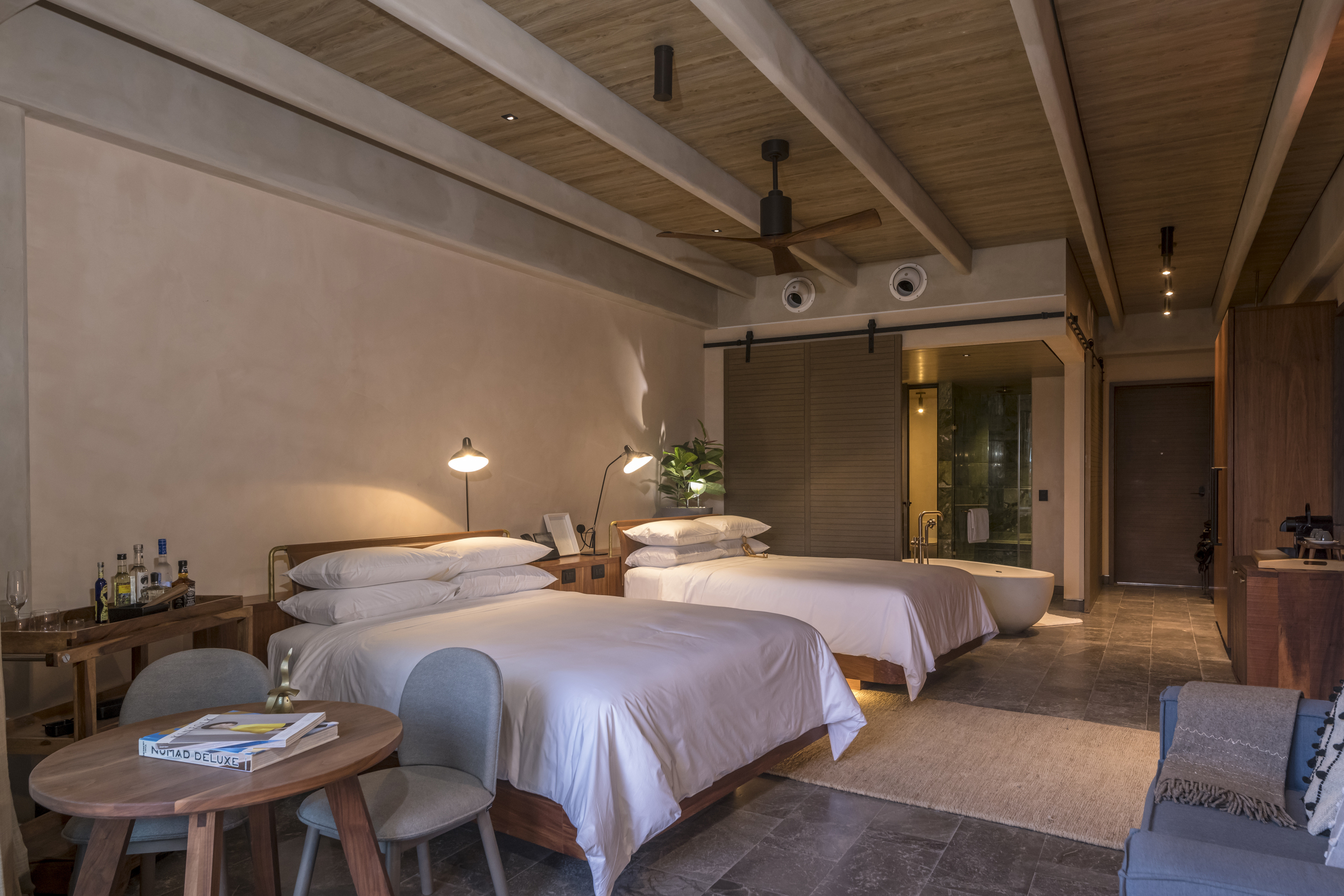 Soft, luxury linens, a rain shower, soaking tub, and premium bath products by Molton Brown®, you will instantly feel relaxed in these luxury resort rooms with mood lighting, ceiling fan, and premium finishes.